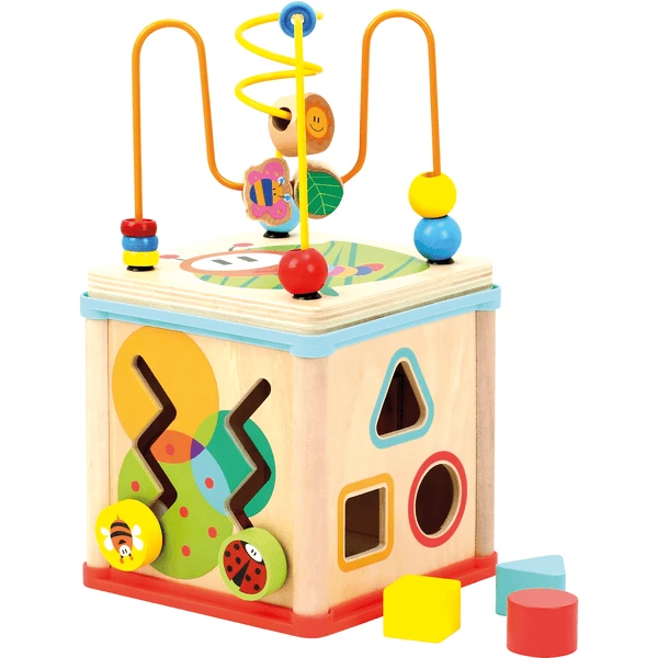Dieser bunte Motorikwürfel bietet Abwechslung und Spaß beim Spielen.