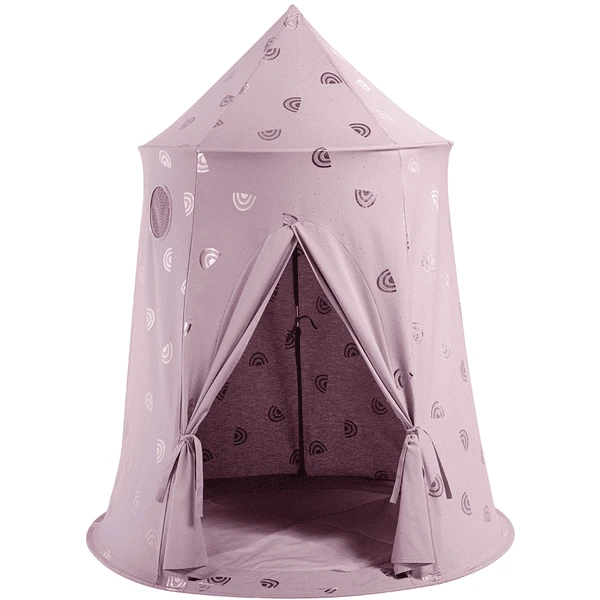 Das Spielzelt von howa ist aus hochwertiger 100% Baumwolle genäht. Das Zelt hat ein modernes Farbdesign. Das Besondere sind die herrlich glänzenden kleinen Regenbogen und Punkte über den Stoff verteilt. Dieser Metallic-Effekt macht das Zelt besonders wertig und modern. Das Kinderzelt lässt sich mit Hilfe der Glasfaserstäbe leicht montieren. Richtig cool sind die kleinen runden Fenster an einer Seite. Die gepolsterte, rutschfeste Bodenmatte macht das Zelt so richtig gemütlich.