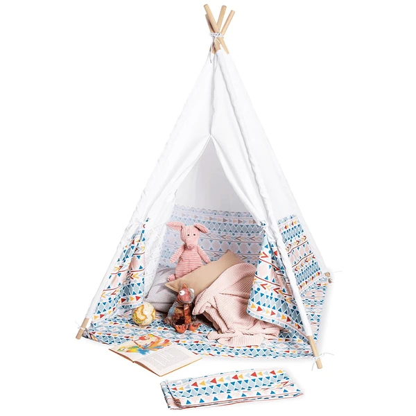 Das Kinderzelt ‘Tipi Naira’ mit buntem Indianer-Muster, ist der